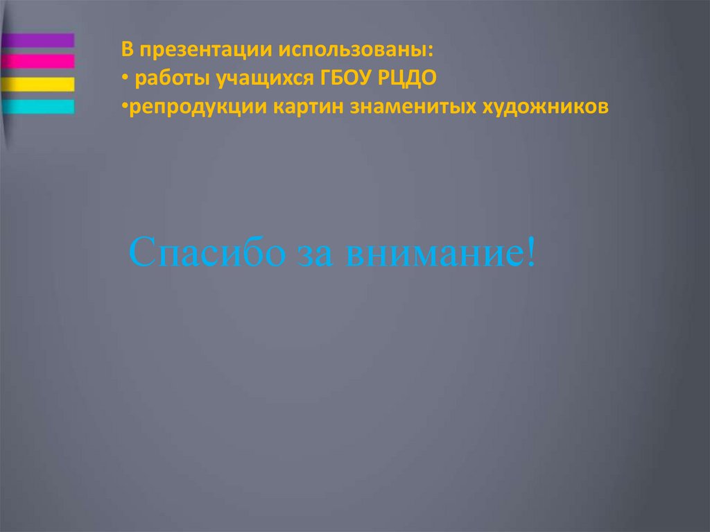 В презентации использованы:• работы учащихся ГБОУ РЦДО