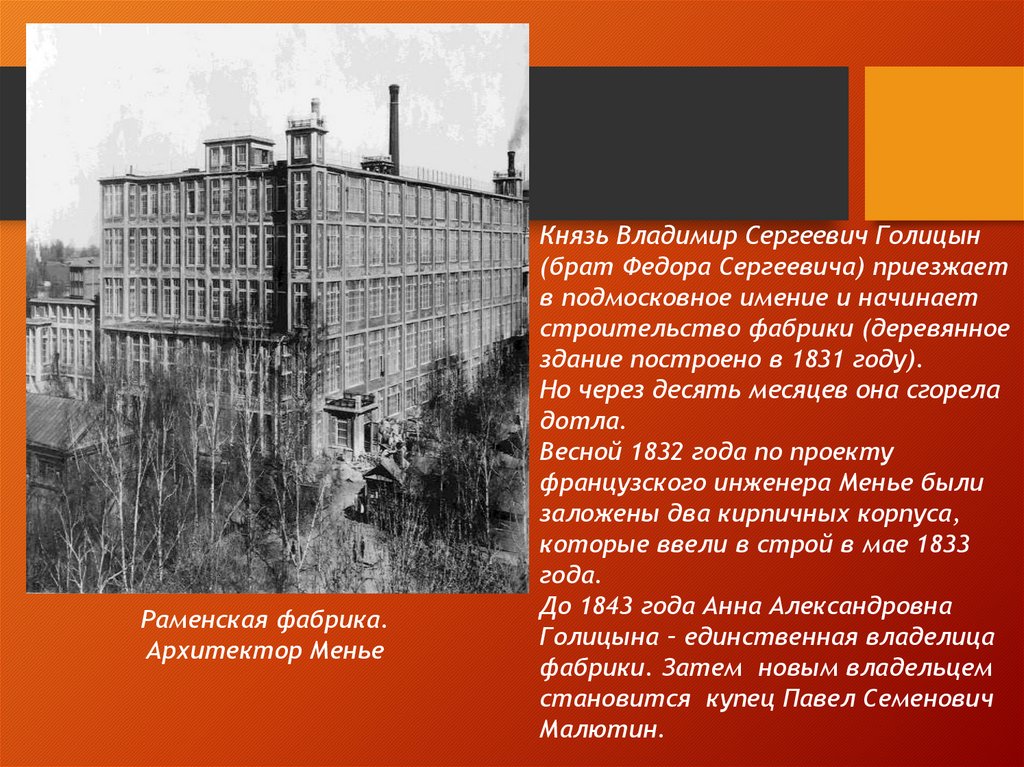 Раменская фабрика.Архитектор Менье