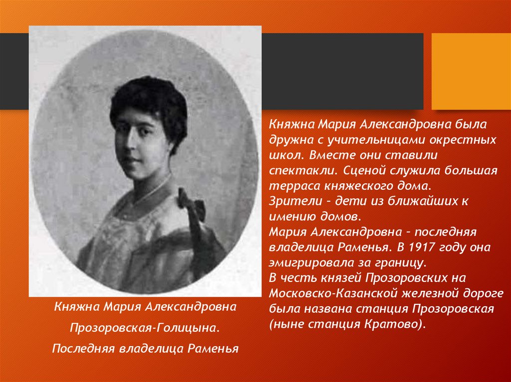 владелица Раменья. В 1917 году она