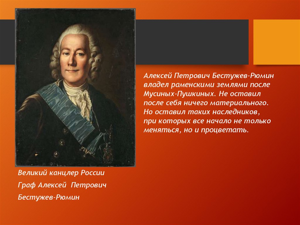 Алексей Петрович Бестужев-Рюминвладел раменскими землями после