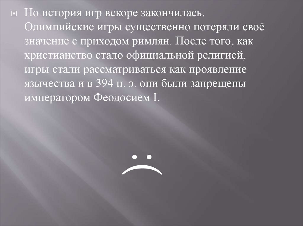 Но история игр вскоре закончилась.Олимпийские игры существенно потеряли своё