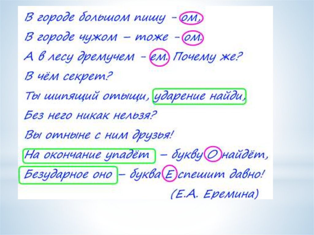 *Если вы усвоили орфограммуО-Е в окончаниях