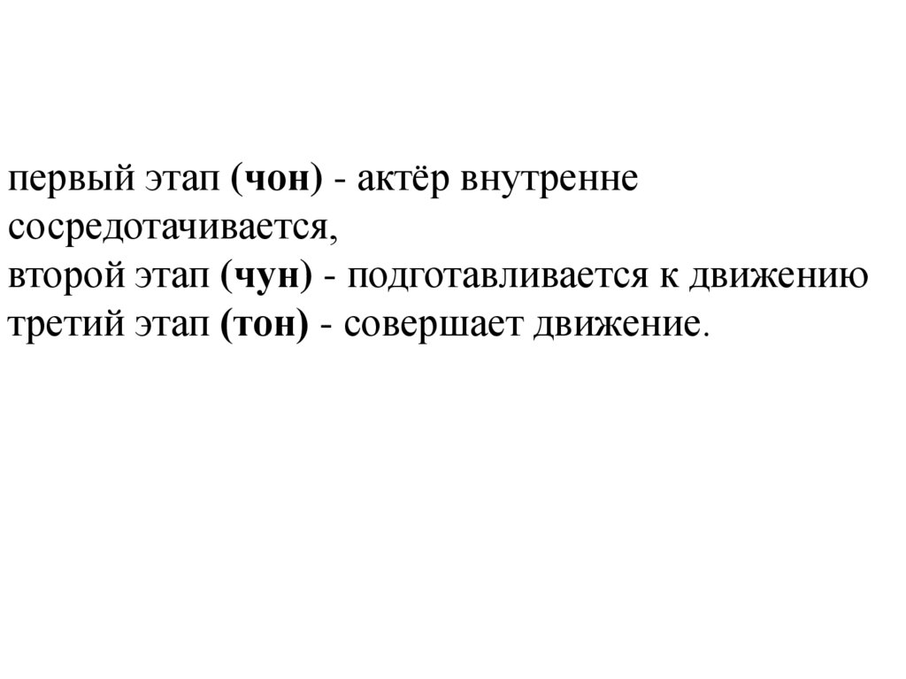 первый этап (чон) - актёр внутреннесосредотачивается,