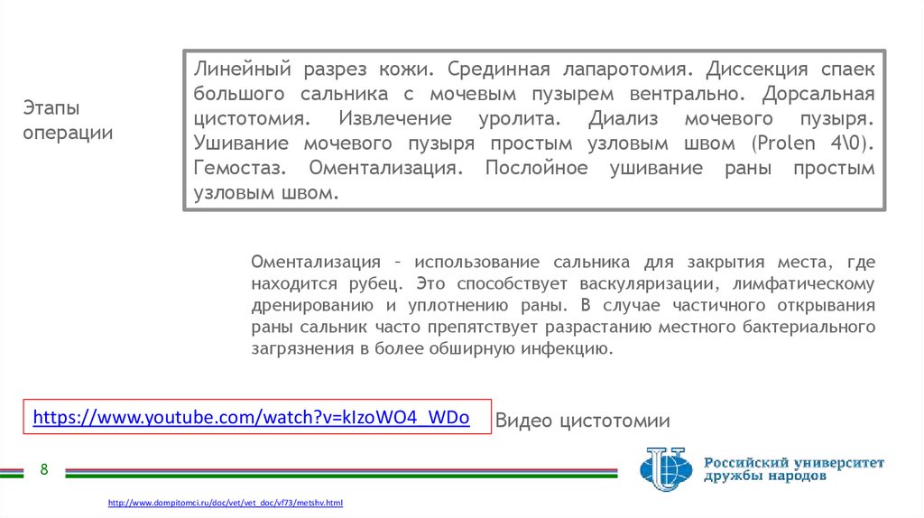 цистотомия. Извлечение уролита. Диализ мочевого пузыря.