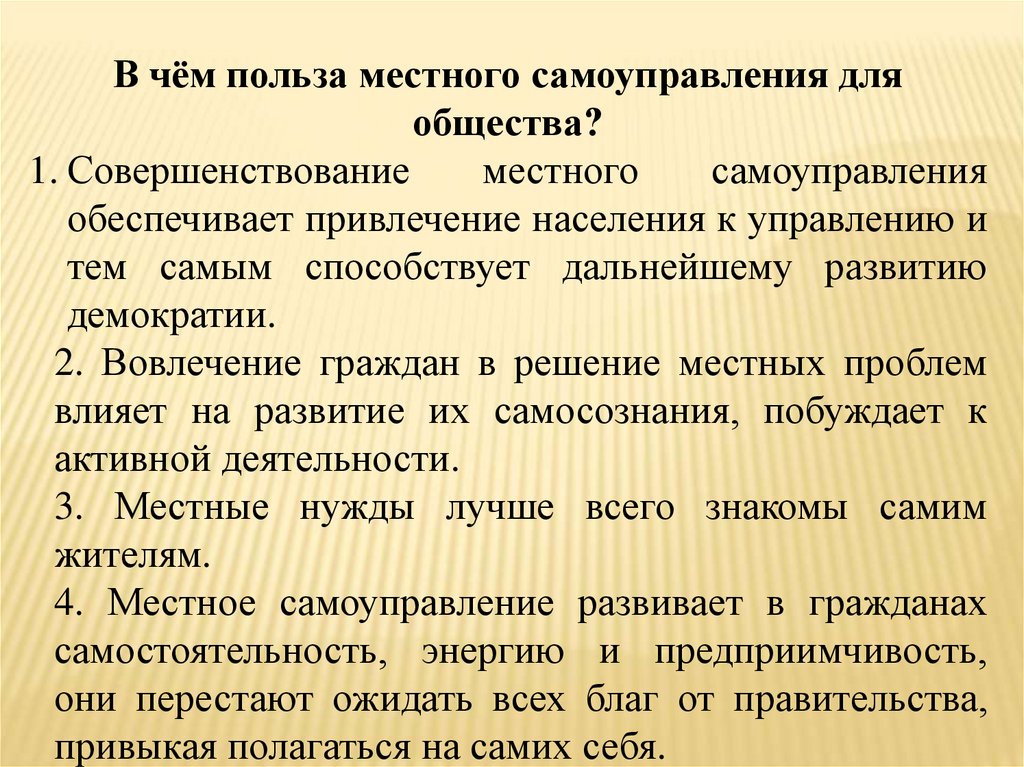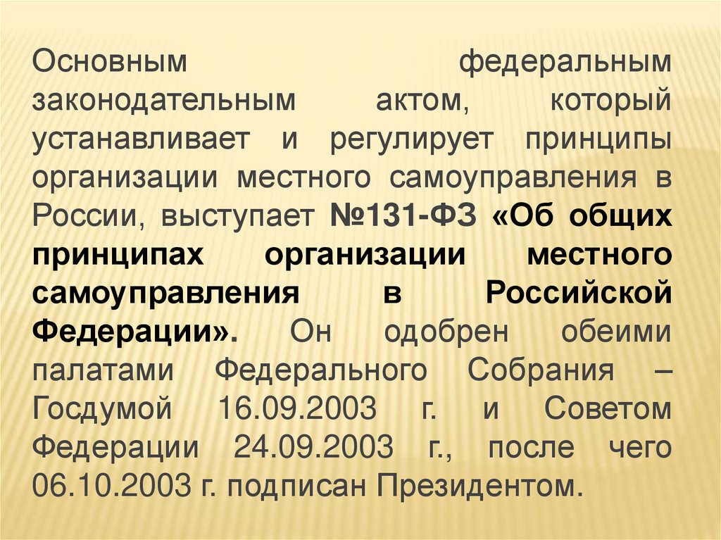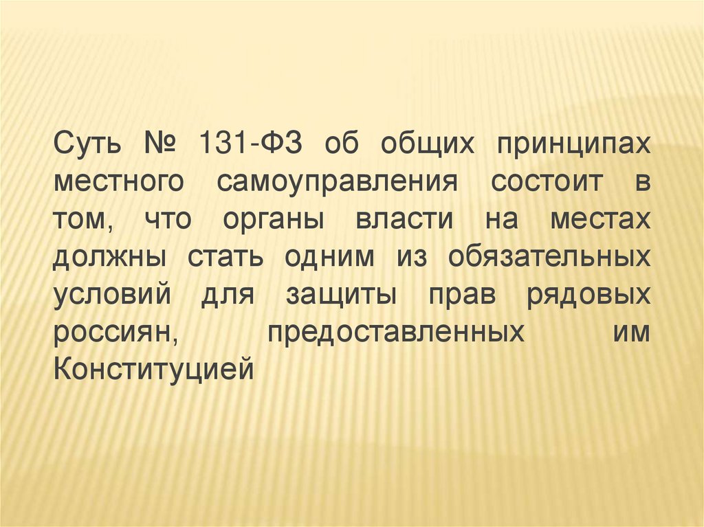 Суть № 131-ФЗ об общих принципахместного самоуправления состоит в
