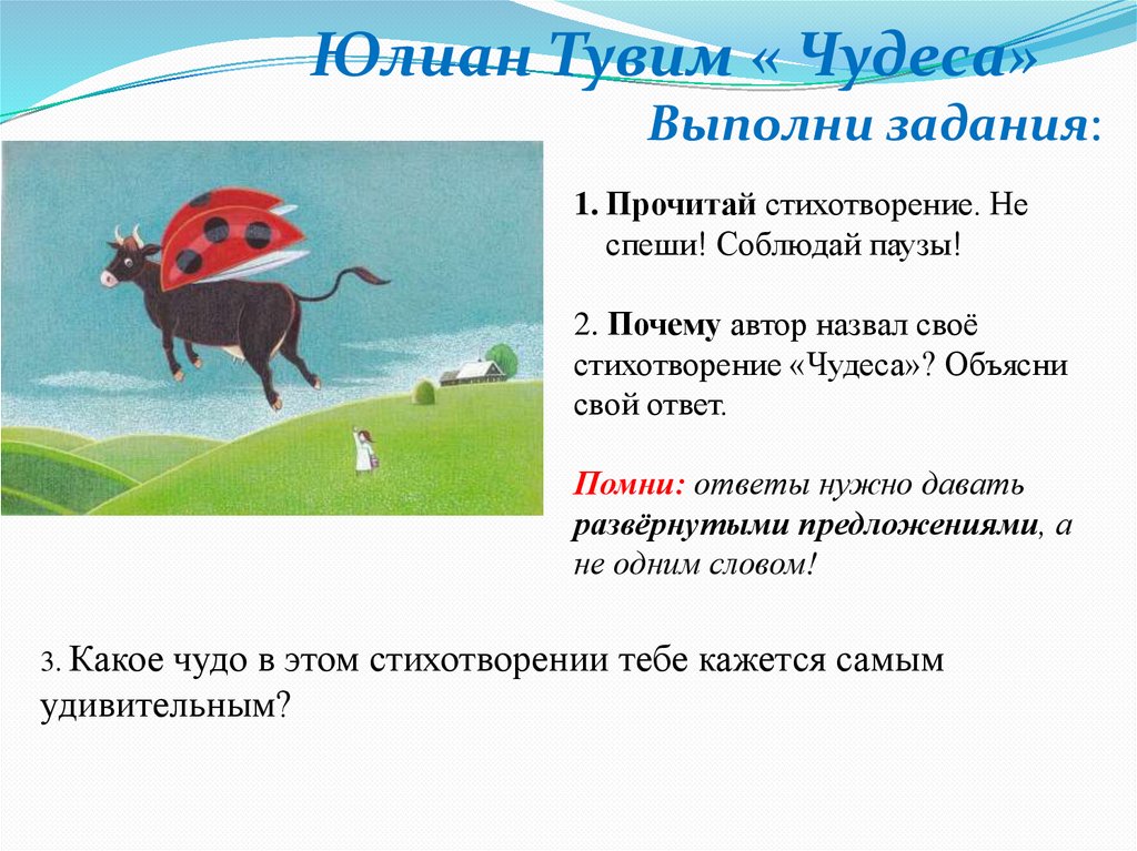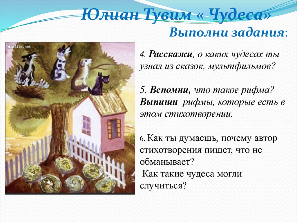 Юлиан Тувим « Чудеса»Выполни задания: