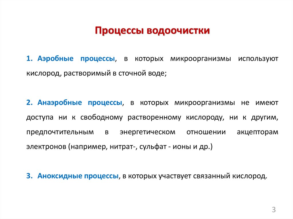 Процессы водоочистки1. Аэробные процессы, в которых микроорганизмы используют