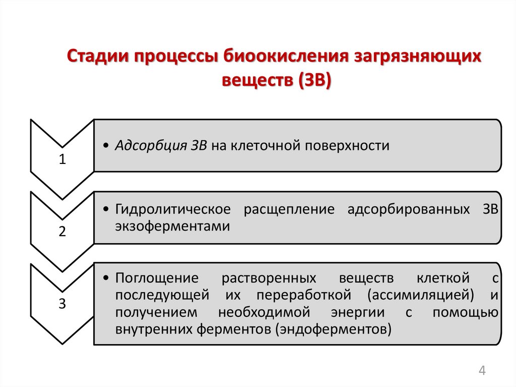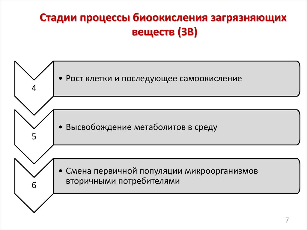 Стадии процессы биоокисления загрязняющихвеществ (ЗВ)