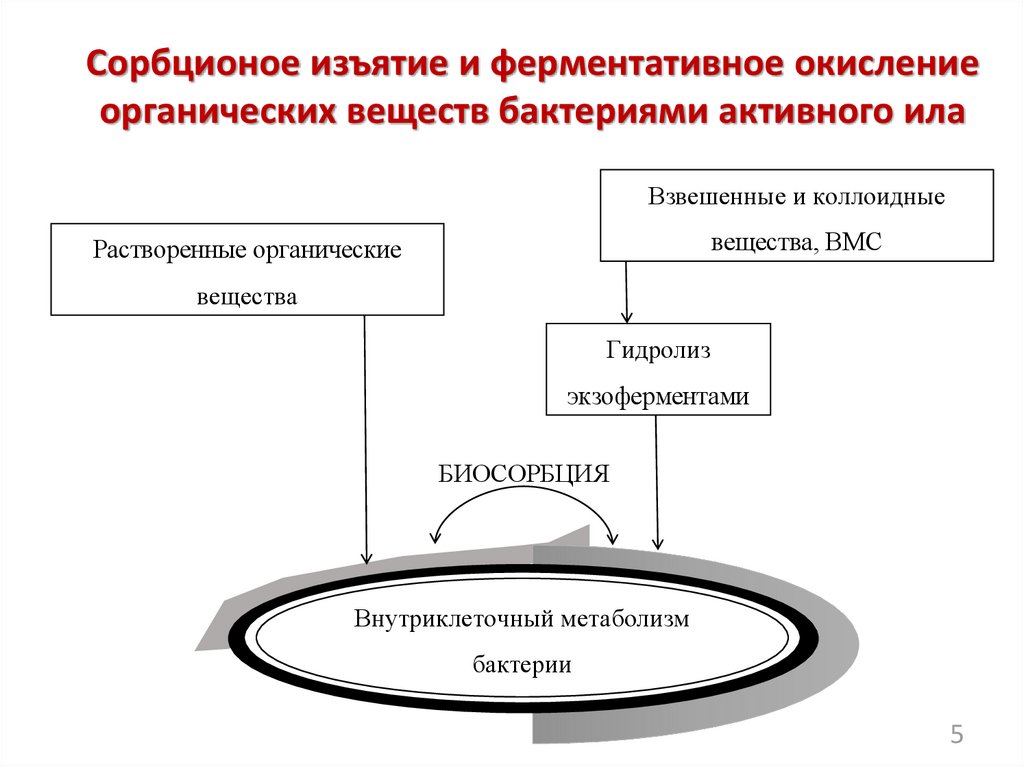Сорбционое изъятие и ферментативное окислениеорганических веществ бактериями активного ила