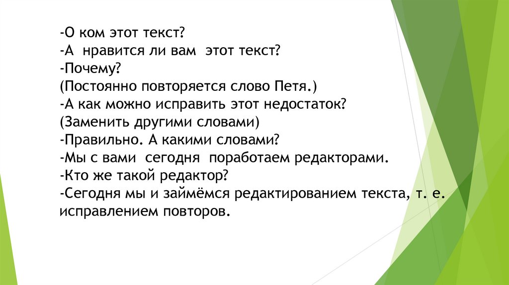 -Сегодня мы и займёмся редактированием текста, т. е.