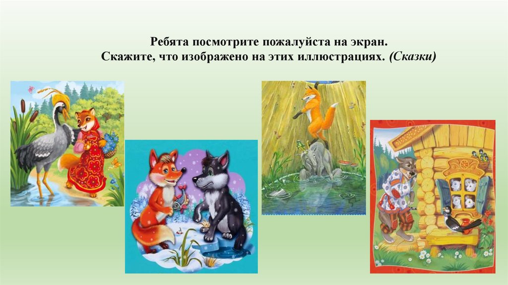 («Лиса и журавль», «Волк и козлята», «Лисичка-сестричка и серый волк»)