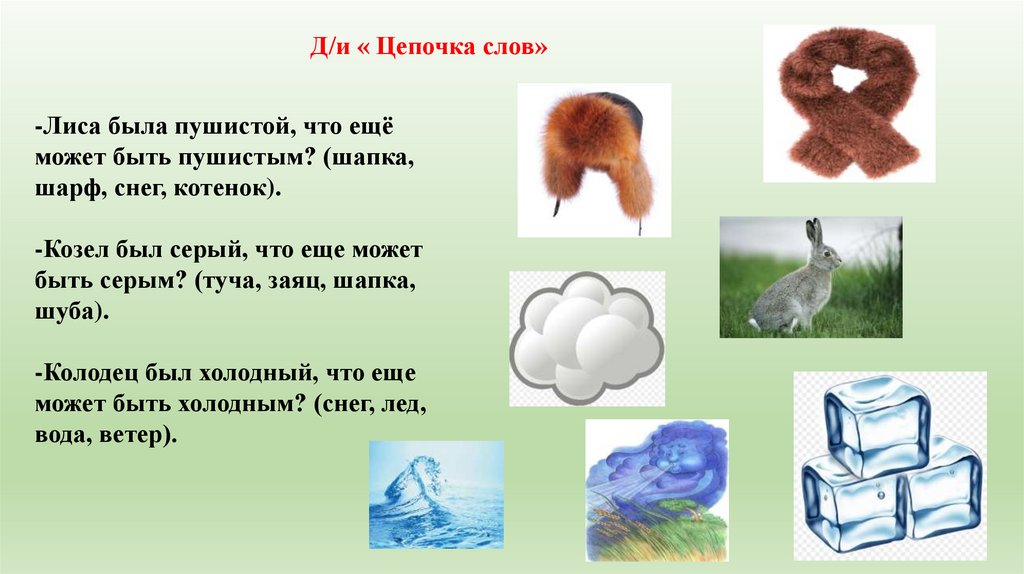 Д/и « Цепочка слов»-Лиса была пушистой, что ещё