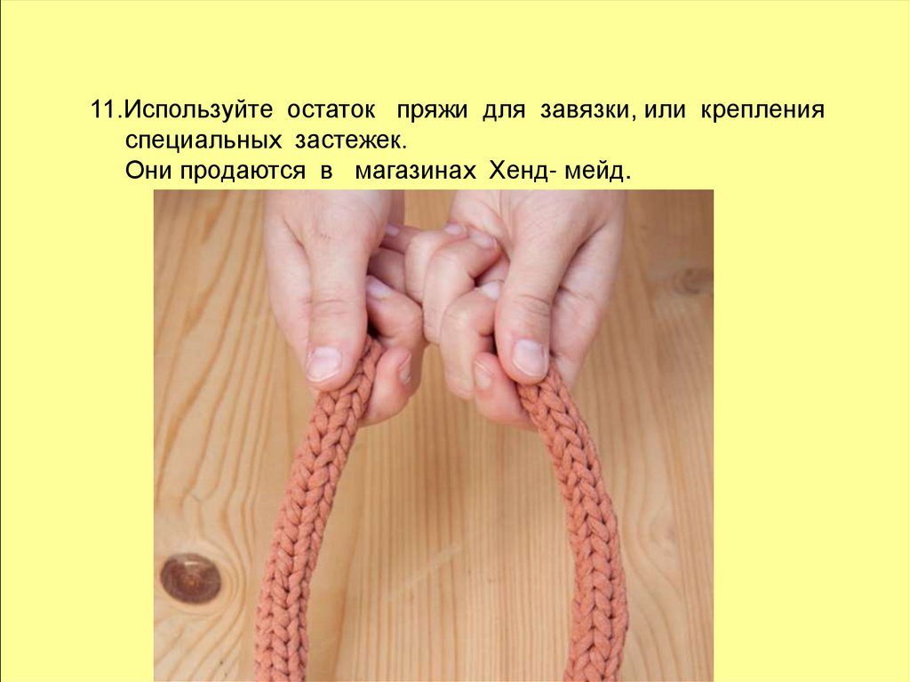 11.Используйте остаток пряжи для завязки, или крепленияспециальных застежек.