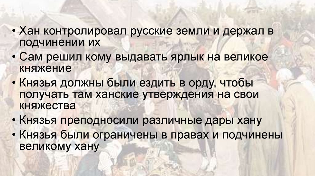 • Хан контролировал русские земли и держал вподчинении их
