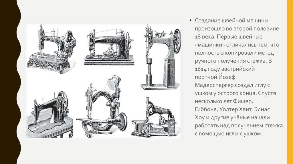 • Создание швейной машиныпроизошло во второй половине