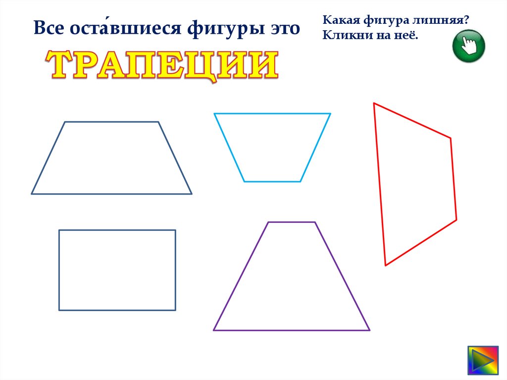 Все оста́вшиеся фигуры этоКакая фигура лишняя?
