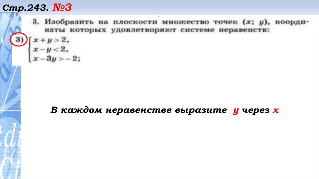 Стр.243. №3В каждом неравенстве выразите у через х