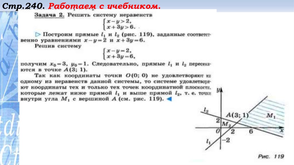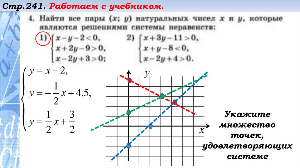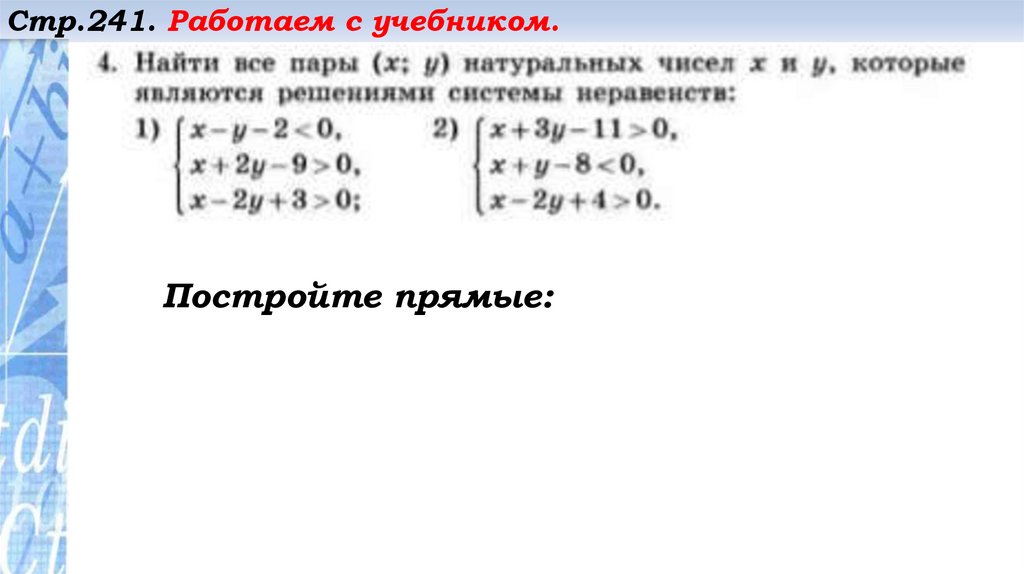 Стр.241. Работаем с учебником.Постройте прямые: