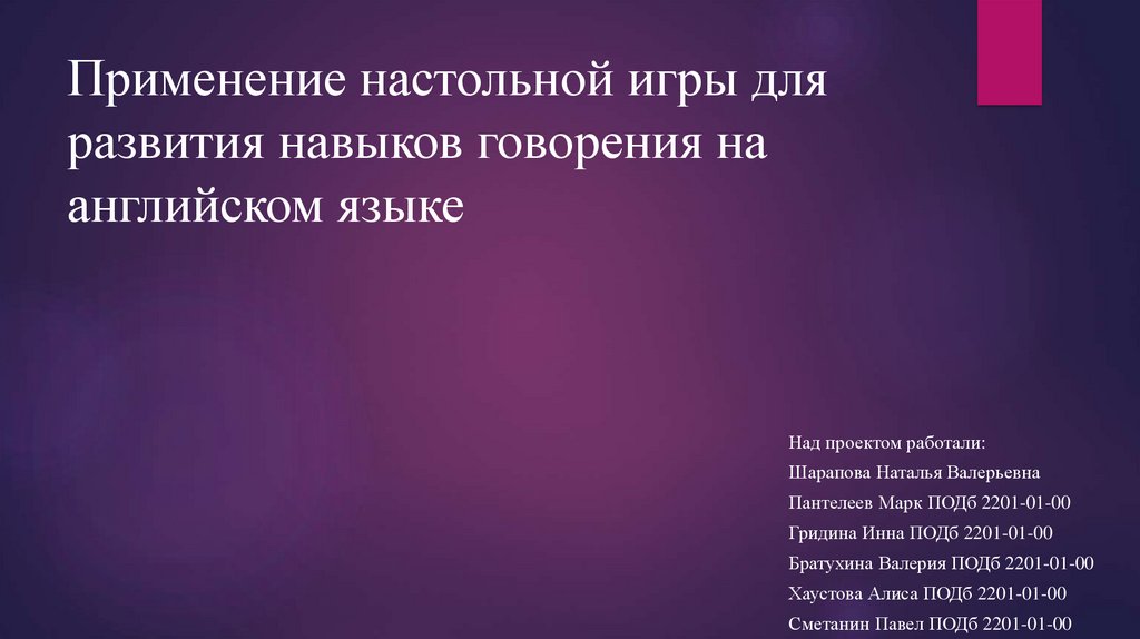 1. Применение настольной игры для развития навыков говорения на английском языке