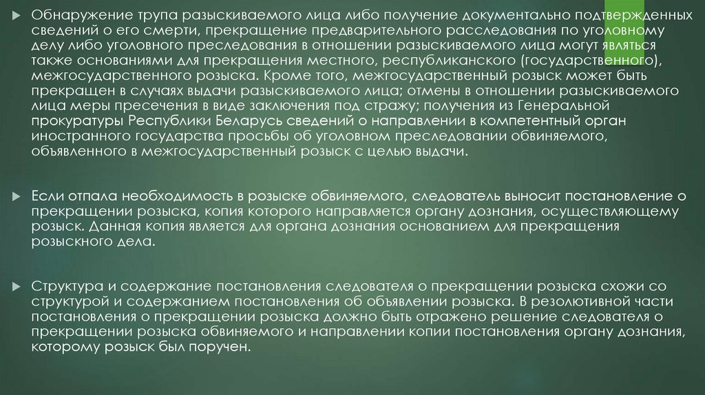 розыск. Данная копия является для органа дознания основанием для прекращения