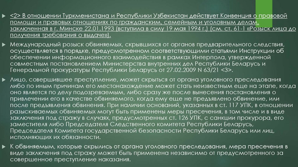 территории Республики Беларусь; выдачи разыскиваемого лица; обнаружения на территории