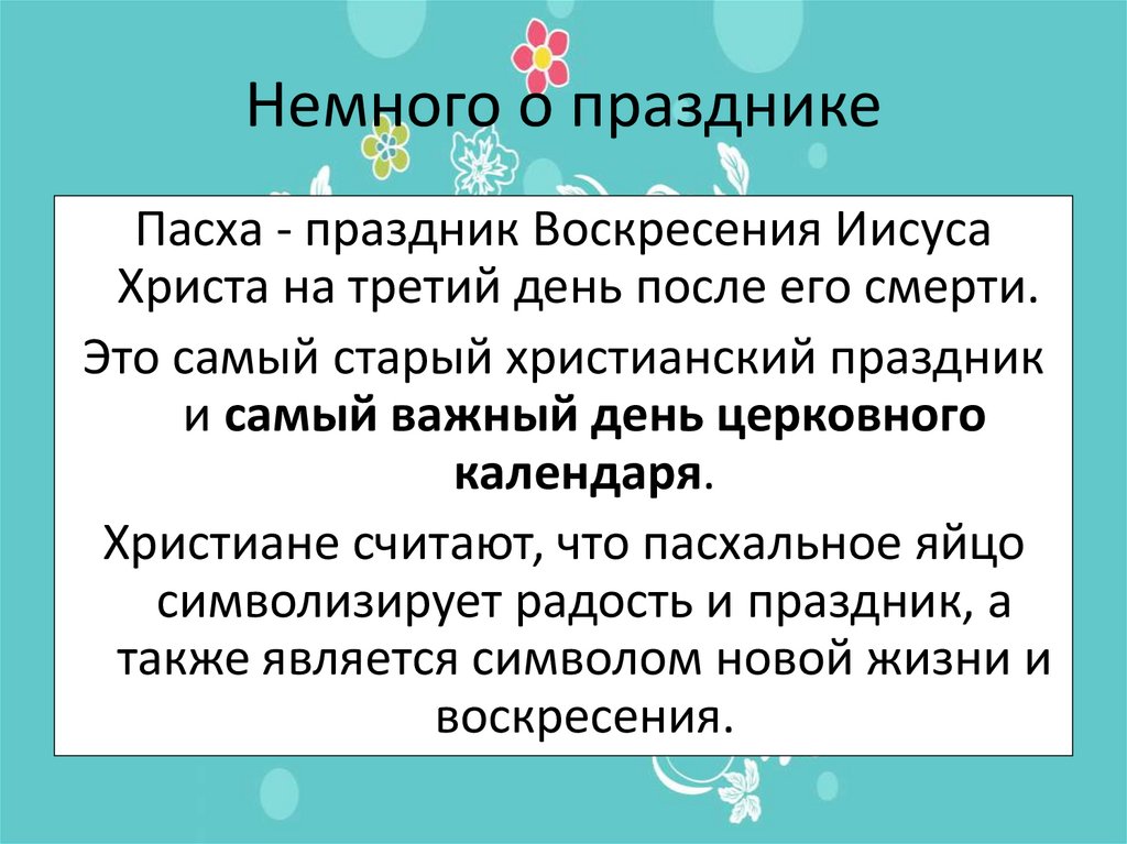 Пасха - праздник Воскресения ИисусаХриста на третий день после его смерти.
