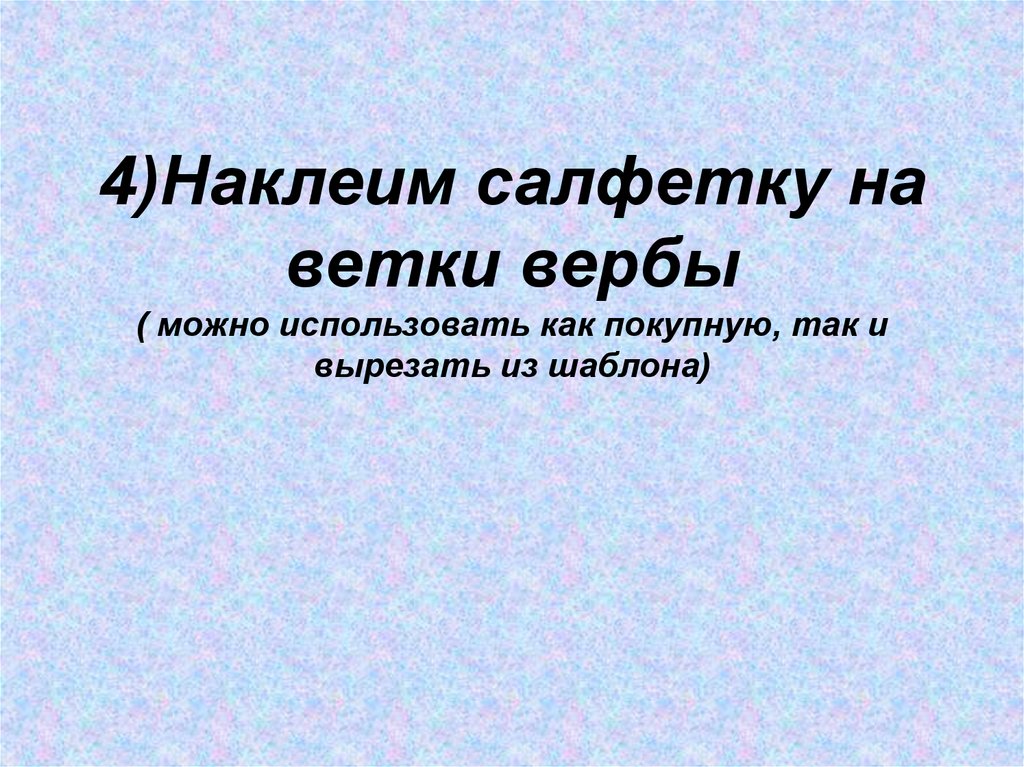 14. 4)Наклеим салфетку на ветки вербы ( можно использовать как покупную, так и вырезать из шаблона)