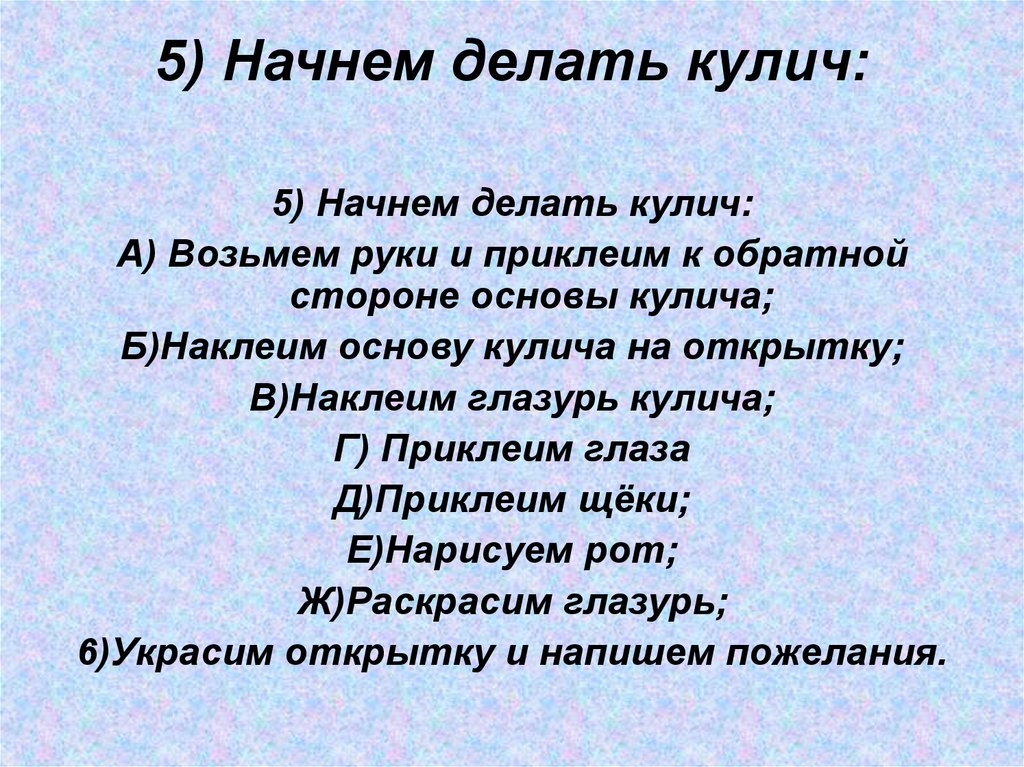 В)Наклеим глазурь кулича;