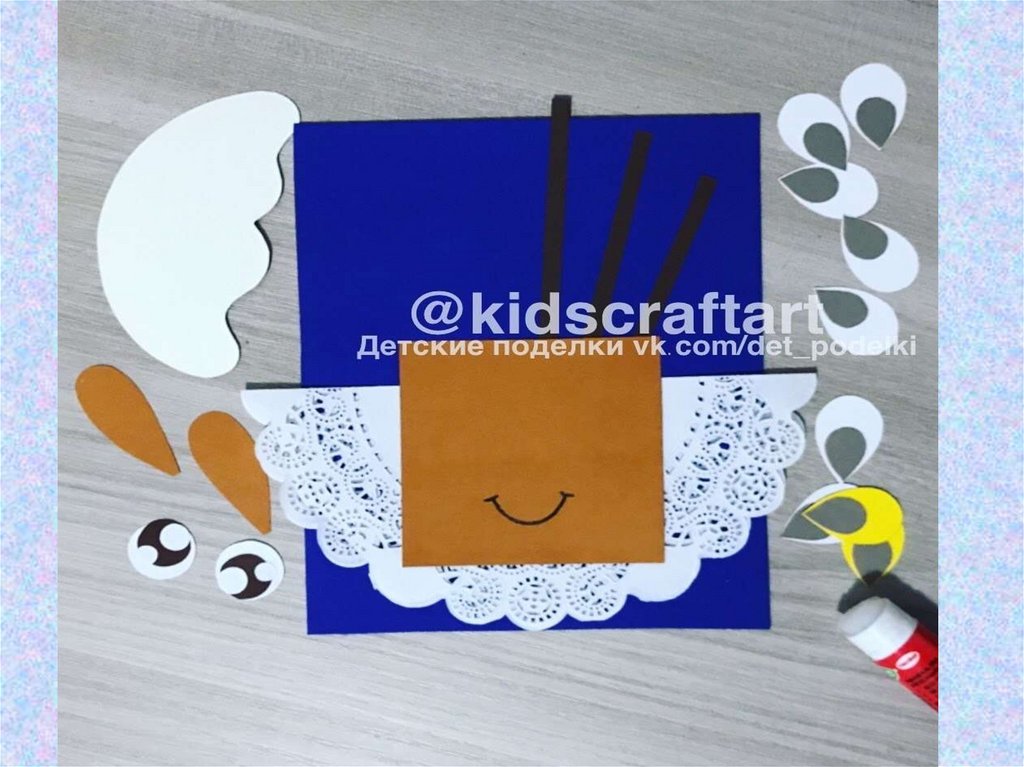 А) Возьмем руки и приклеим к обратной стороне основы