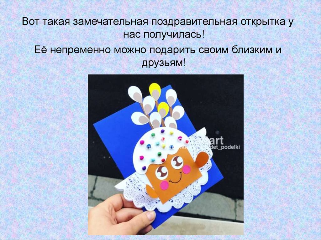 Вот такая замечательная поздравительная открытка унас получилась!