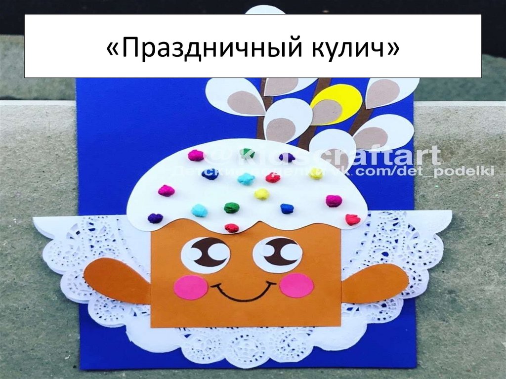 Б)Наклеим основу кулича на открытку;