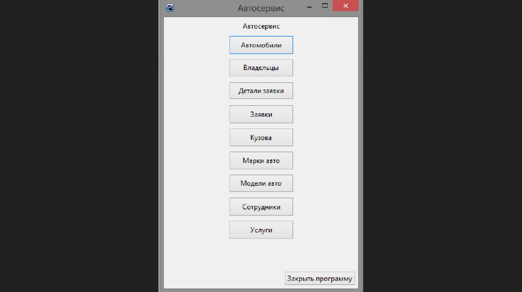 Тема: Разработка приложения «Автосервис»