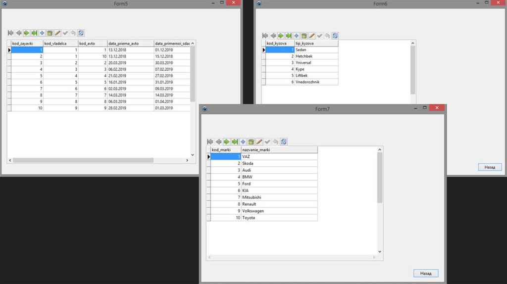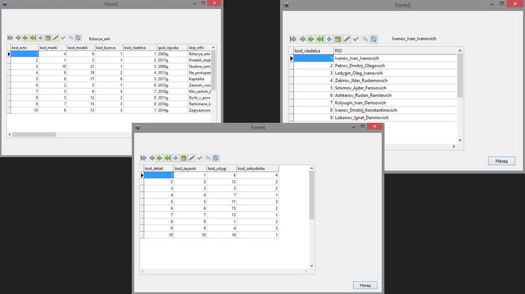Создание интерфейса к базе данных