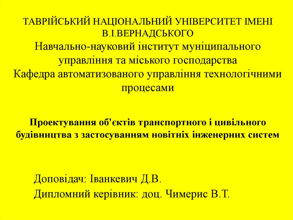 Проектування об'єктів транспортного і цивільного будівництва з застосуванням новітніх інженерних систем