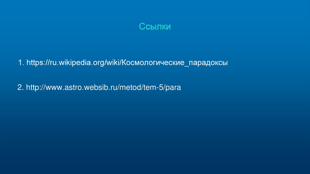 Ссылки1. https://ru.wikipedia.org/wiki/Космологические_парадоксы