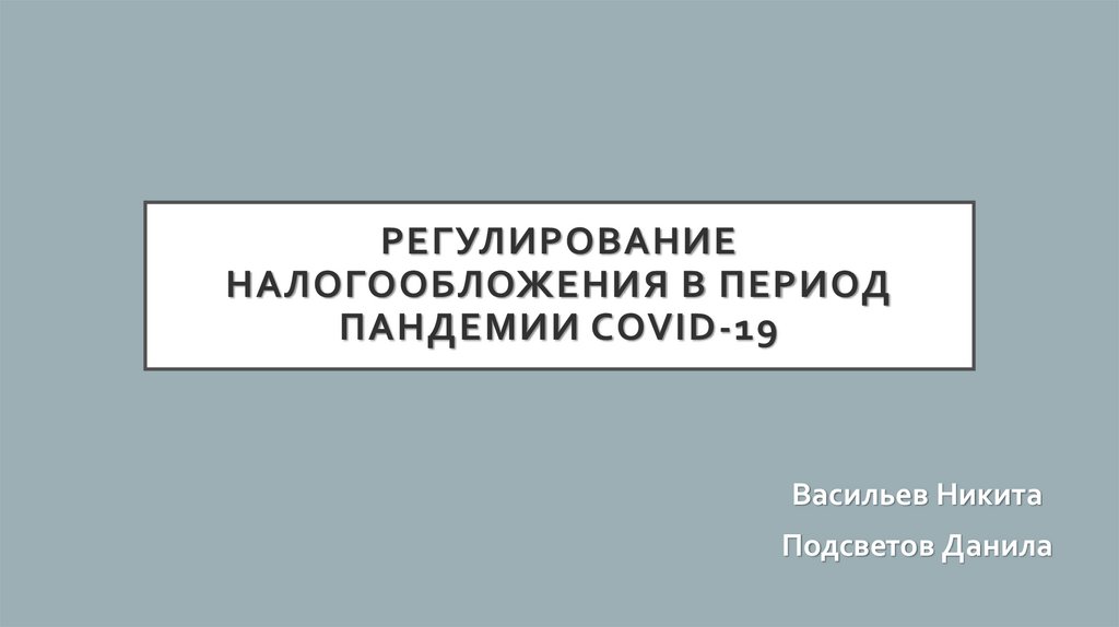 РЕГУЛИРОВАНИЕНАЛОГООБЛОЖЕНИЯ В ПЕРИОД