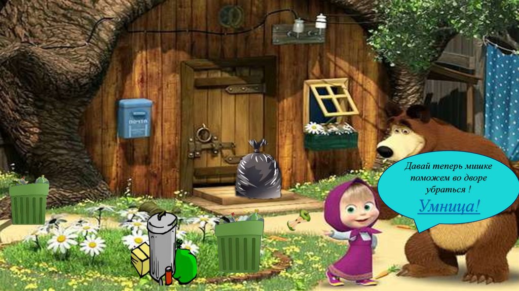 Давай теперь мишкепоможем во дворе