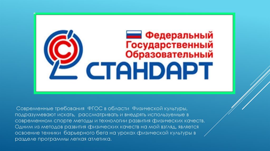 Современные требования ФГОС в области Физической культуры,подразумевают искать, рассматривать и внедрять используемые в