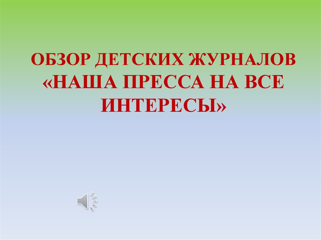1. ОБЗОР ДЕТСКИХ ЖУРНАЛОВ «НАША ПРЕССА НА ВСЕ ИНТЕРЕСЫ»