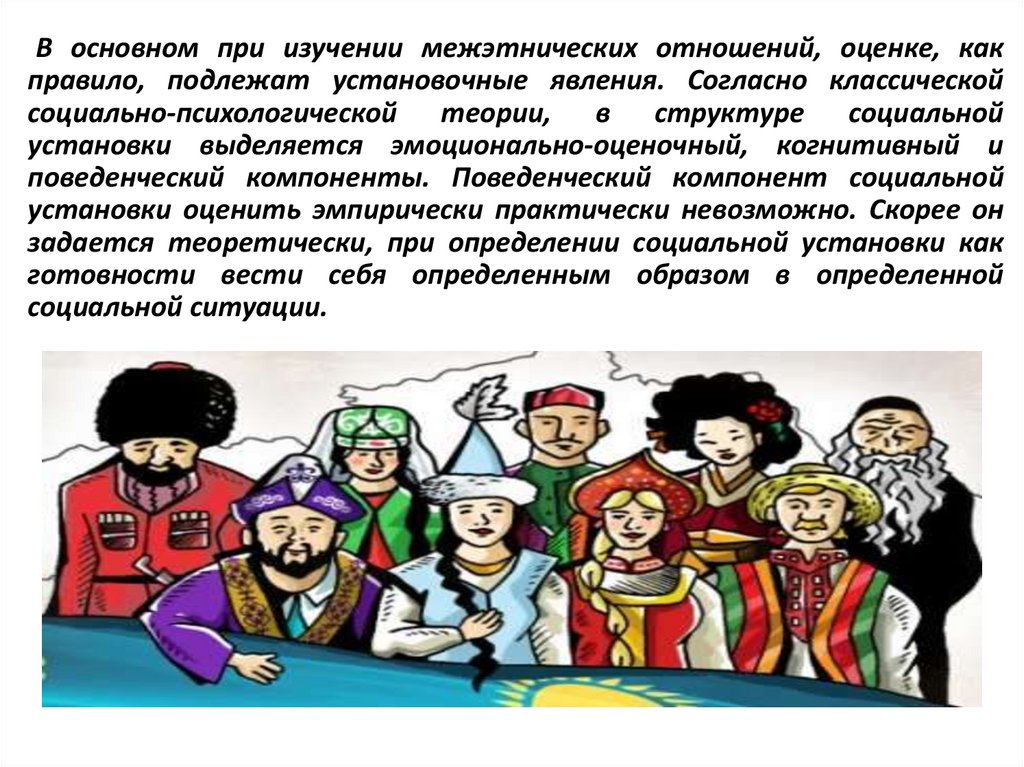 В основном при изучении межэтнических отношений, оценке, какправило, подлежат установочные явления. Согласно классической