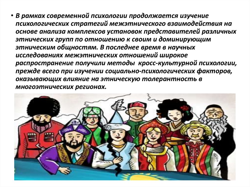 • В рамках современной психологии продолжается изучениепсихологических стратегий межэтнического взаимодействия на