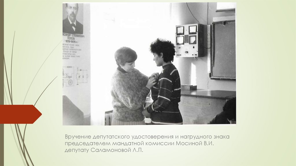 Вручение депутатского удостоверения и нагрудного знакапредседателем мандатной комиссии Мосиной В.И.