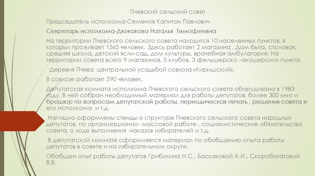 Пчевский сельский советПредседатель исполкома-Семенов Капитон Павлович