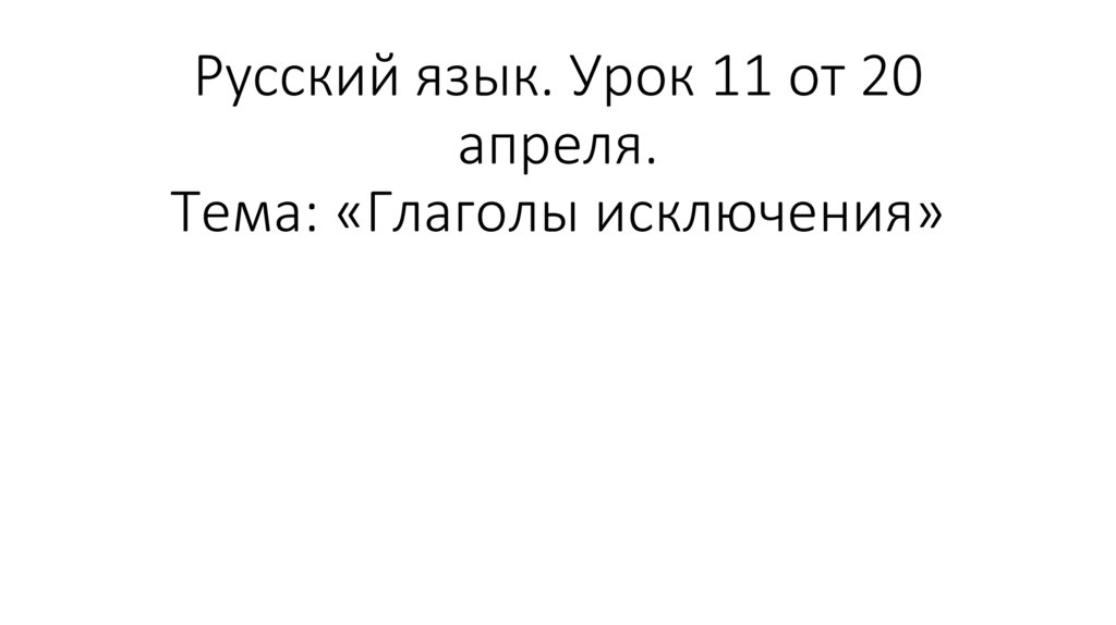 1. Русский язык. Урок 11 от 20 апреля. Тема: «Глаголы исключения»