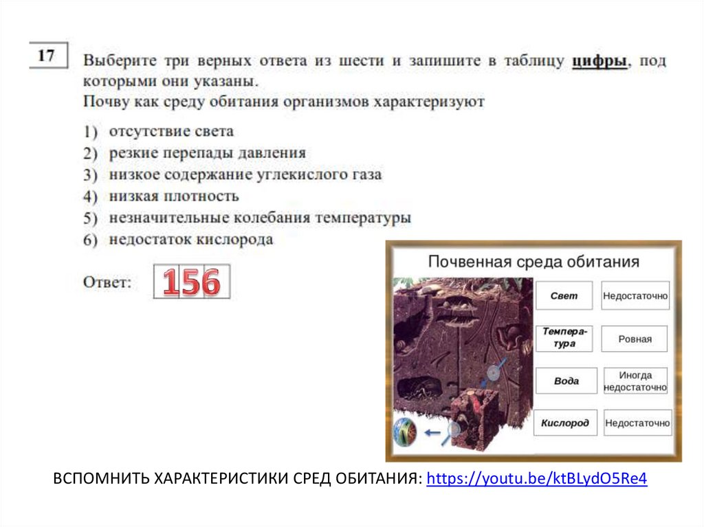 ВСПОМНИТЬ ХАРАКТЕРИСТИКИ СРЕД ОБИТАНИЯ: https://youtu.be/ktBLydO5Re419.