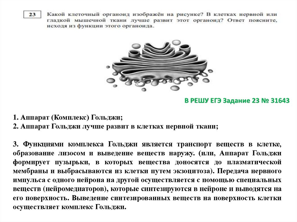 В РЕШУ ЕГЭ Задание 23 № 316431. Аппарат (Комплекс) Гольджи;