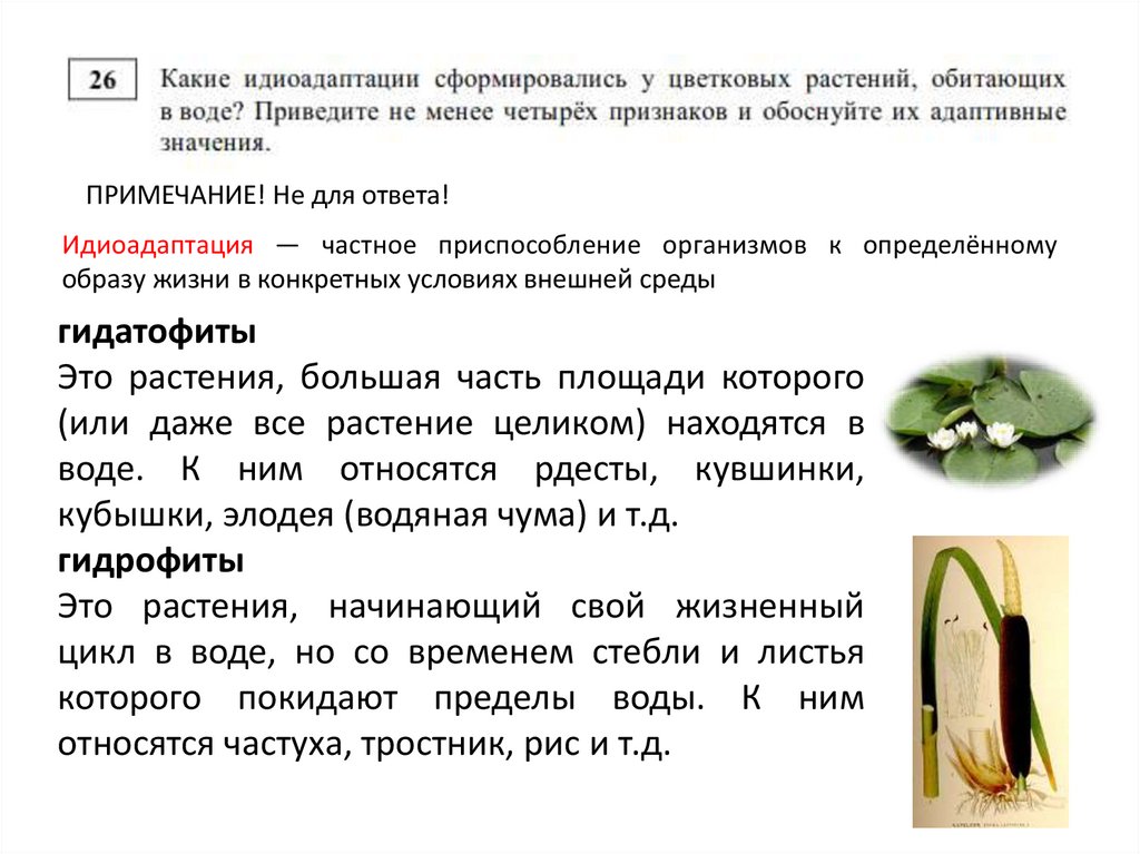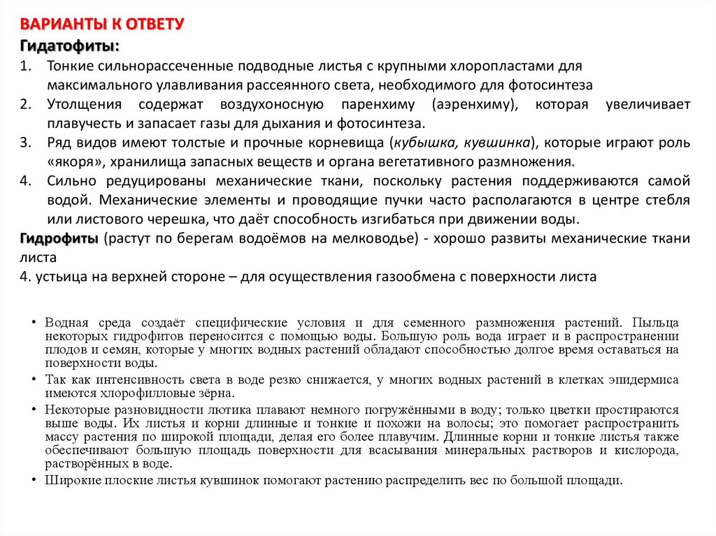 ВАРИАНТЫ К ОТВЕТУГидатофиты: