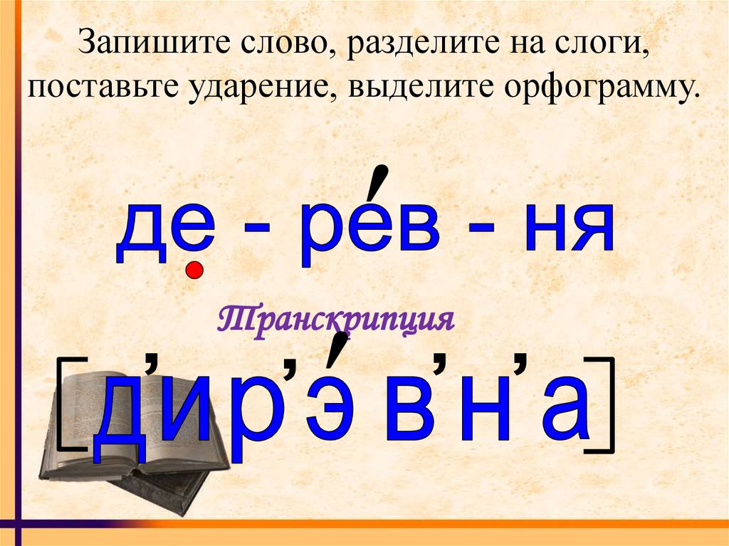 Запишите слово, разделите на слоги,поставьте ударение, выделите орфограмму.