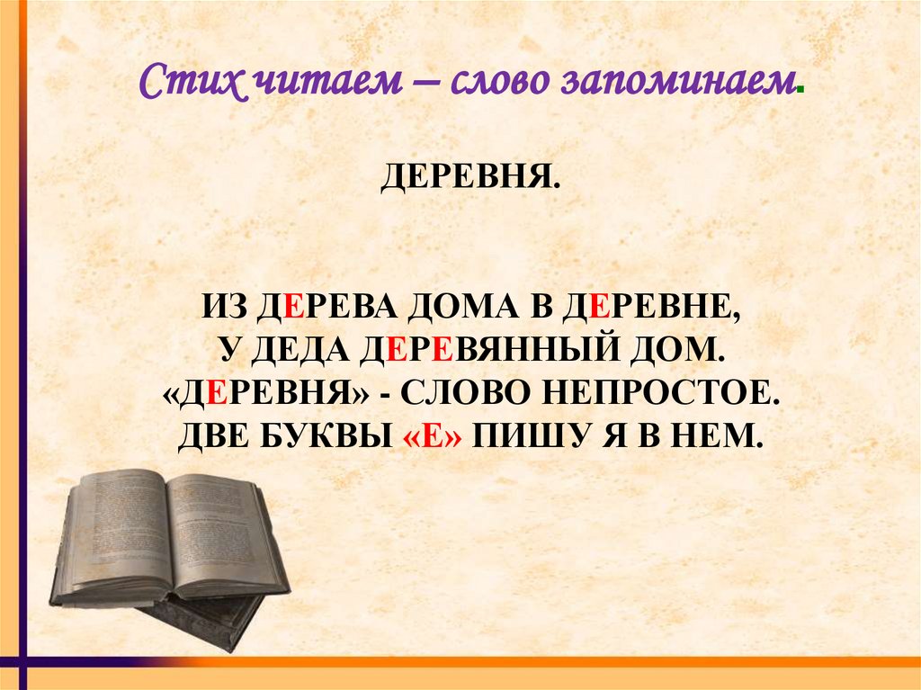 Стих читаем – слово запоминаем.ДЕРЕВНЯ.