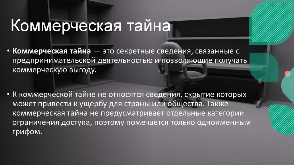 Коммерческая тайна• Коммерческая тайна — это секретные сведения, связанные с